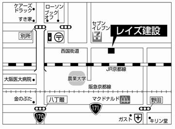 レイズ建設株式会社 〒569-1104 大阪府高槻市安満東の町2番10号 TEL 072-668-1238 FAX 072-668-1239